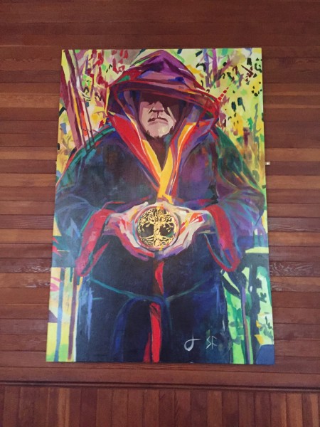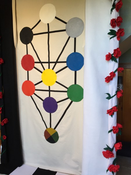 The Tree of Life is a symbol at the center of most cultures and religious traditions; for example, the Bodhi tree in Buddhism and the transformative cross in Christianity. The Kaballah Tree of Life in the Jewish tradition, for example, helps us understand how spirit manifests in form. The Kaballah involves energy centers or portals called sephirah that open us to different qualities of the Divine. The sephirah are multi faceted and are historically linked to many powerful symbols, including archangels, particular colours, tarot cards, sounds, points on the body and to the stars. The Kaballah is a complete symbol of wholeness. Wendy Pope and I studied the Hermetic tradition Qabala Tree of Life together and decided to create an art show and performance to celebrate both the internal and metaphoric tree and the physical tree in our world, upon which we depend for life, in our breath exchange.